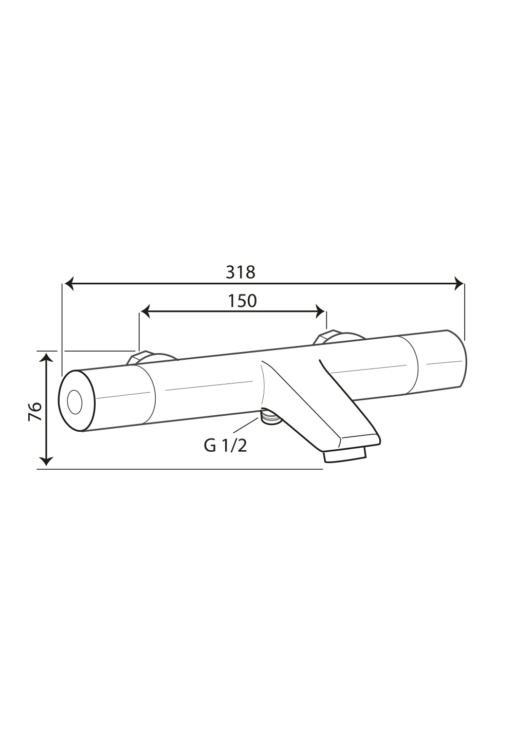 Dusj og badekarsblander. Gjennom sin unike konstruksjon blir overflaten aldri varmereen 38 grader. Med termostat og skåldebeskyttelse. cc tut- vegg 140mm.