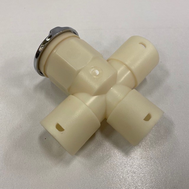 3-vägsventil till massagebadkar. Kan kombineras med Tätningsset (80500014) för att användas till limfria slangsystem. Utan tätningsset kan den ersätta den äldre limmade 3-vägsventilen(80000389). Går att limma 32mm Koller slang(80002647) för att använda denna till limmade slangsystem.