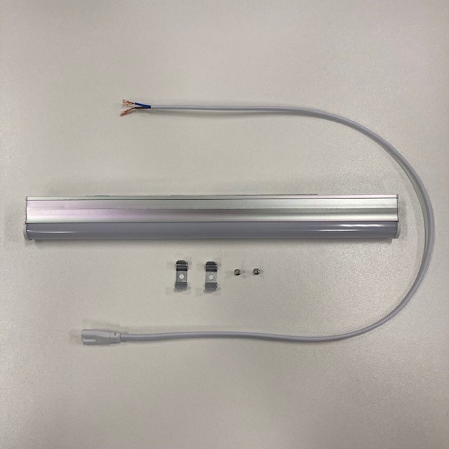 5W Belysningsarmatur i LED, med inbyggd transformator, framtagen för att kunna ersätta äldre lysrörsarmaturer. Längd 300mm, 3000K. Kommer med 2st beslag och dubbelhäftande tejp på baksidan av armaturen.