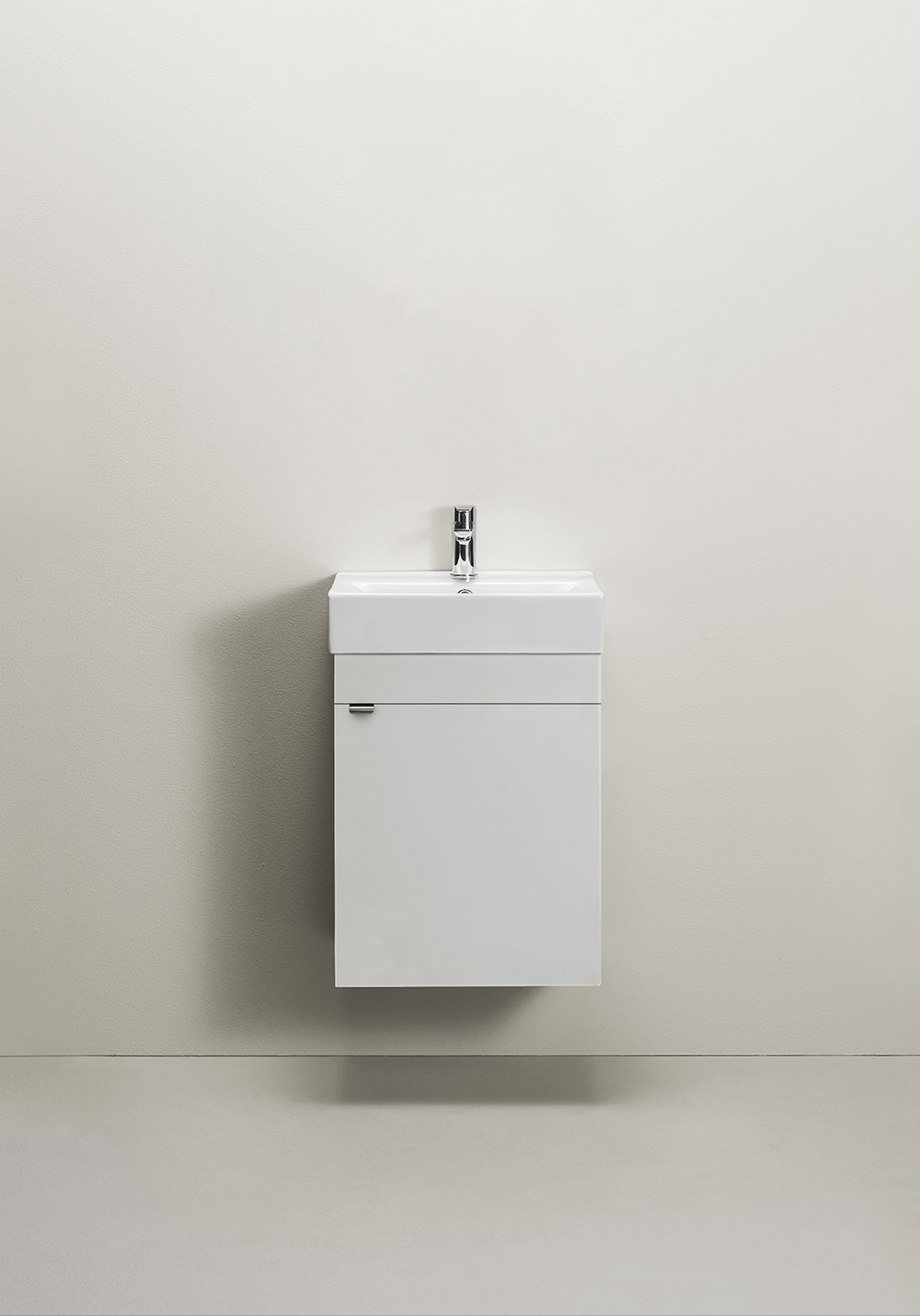 Servantskap i fløyelsmatt lakk i svart eller hvitt med mykstengende dør og servant. Enkelt å installere for en person med skinne på veggen. Forberedt for både vegg- og gulvavløp i bakkant for enkel montering. Justerbare monteringsbraketter. Kompletter med servant og den vannlåsen som passer din løsning. Sett din personlige stil med ett av våre håndtak eller knotter.