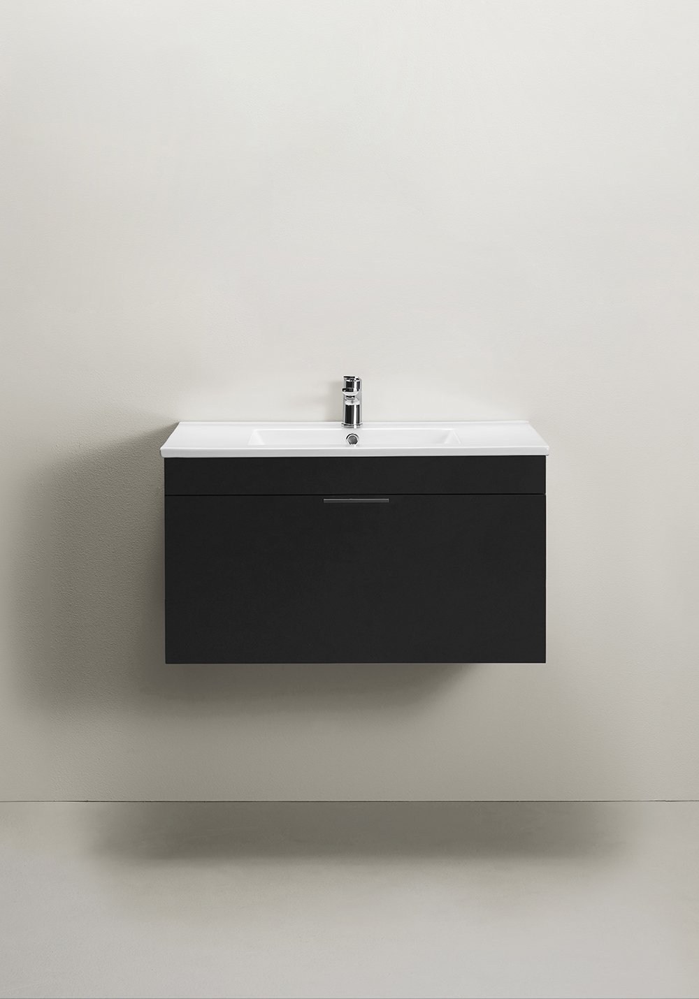 Servantskap med mykstengende skuff som gir generøs oppbevaring. Enkelt å installere for en person med skinne på veggen. Forberedt for både vegg- og gulvavløp i bakkant for enkel montering. Justerbare monteringsbraketter. Kompletter med servant og PUM-vannlås for kommode, 126 56 00. Sett din personlige stil med ett av våre håndtak og knotter.