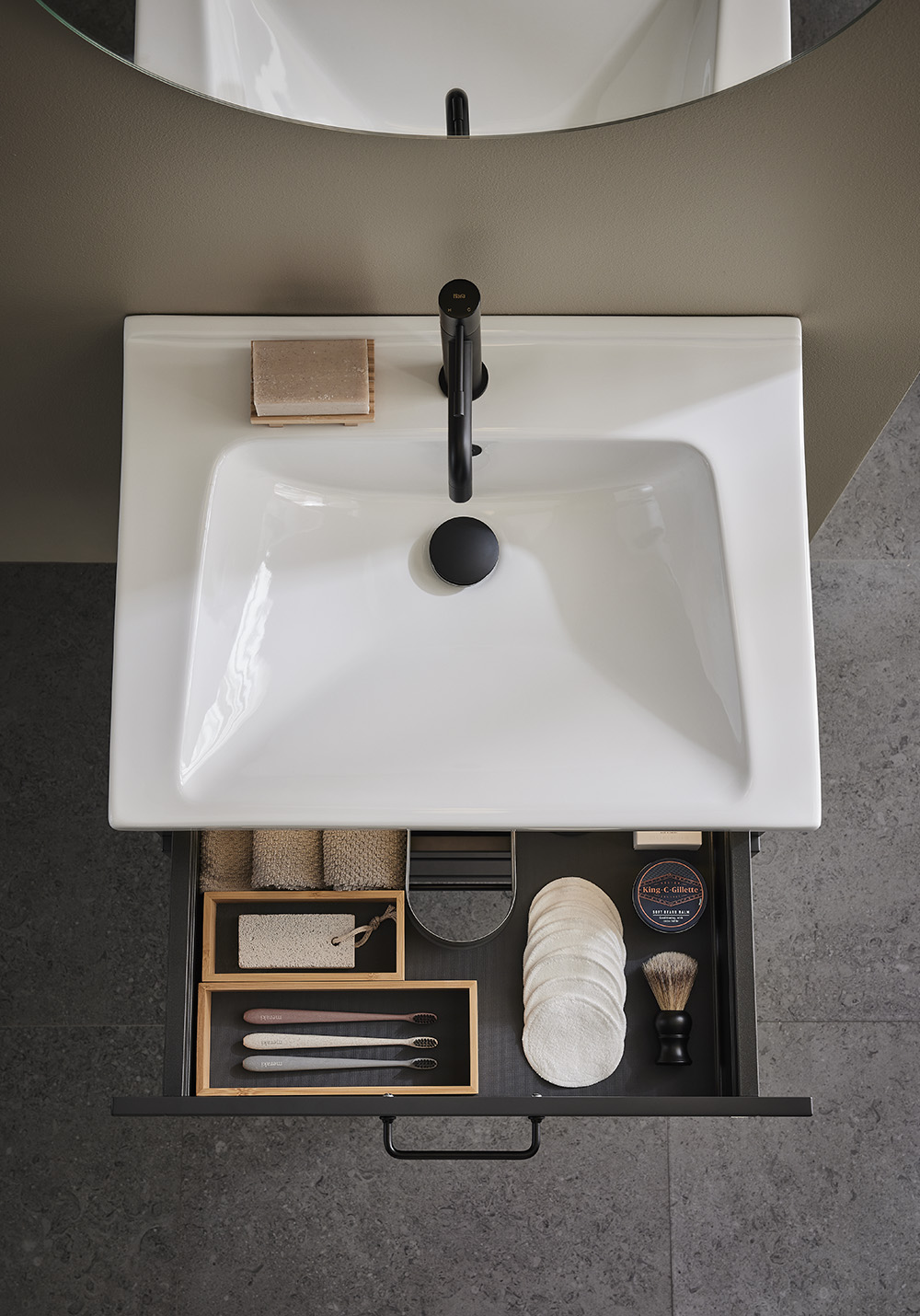 Hafa Grace er baderomsmøbler med vakkert profilerte fronter designet for å passe inn i både et landlig og et moderne baderom i skandinavisk stil. Mykstengende skuffer med fulluttrekk gir god oversikt over innholdet. Skuffematter og skuffeinnredning av bambus hjelper til med å holder orden. Baderomsskapet er ferdigmontert og enkelt å montere med justerbare opphengsbraketter og plass tilrettelagt for både vegg- og gulvavløp. Grace servantskap finner i flere bredder fra 600 opp til 1200 og i to matte farger - hvit og antrasitt. Hafa Grace er baderomsmøbler med vakkert profilerte fronter designet for å passe inn i både et landlig og et moderne baderom i skandinavisk stil. Mykstengende skuffer med fulluttrekk gir god oversikt over innholdet. Skuffematter og skuffeinnredning av bambus hjelper til med å holder orden. Baderomsskapet er ferdigmontert og enkelt å montere med justerbare opphengsbraketter og plass tilrettelagt for både vegg- og gulvavløp. Grace servantskap finner i flere bredder fra 600 opp til 1200 og i to matte farger - hvit og antrasitt. Sidemodulen gir mulighet til å lage ytterligere varianter og kombinere et baderomsmøbel som passer akkurat ditt baderom. Velg håndtak eller knott som passer din stil og kompletter med frittstående servant på en benkeplate eller nedsenket servant i porselen. Kjøp til blandebatteri, bunnventil, vannlås, skuffebelysning og stikkontakt. Sidemodulen gir mulighet til å lage ytterligere varianter og kombinere et baderomsmøbel som passer akkurat ditt baderom. Velg håndtak eller knott som passer din stil og kompletter med frittstående servant på en benkeplate eller nedsenket servant i porselen. Kjøp til blandebatteri, bunnventil, vannlås, skuffebelysning og stikkontakt.