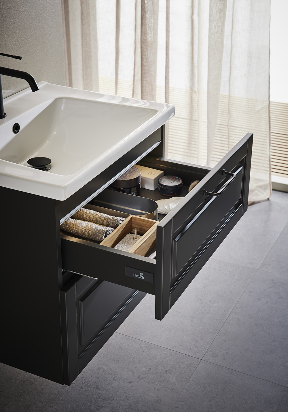 Hafa Grace er baderomsmøbler med vakkert profilerte fronter designet for å passe inn i både et landlig og et moderne baderom i skandinavisk stil. Mykstengende skuffer med fulluttrekk gir god oversikt over innholdet. Skuffematter og skuffeinnredning av bambus hjelper til med å holder orden. Baderomsskapet er ferdigmontert og enkelt å montere med justerbare opphengsbraketter og plass tilrettelagt for både vegg- og gulvavløp. Grace servantskap finner i flere bredder fra 600 opp til 1200 og i to matte farger - hvit og antrasitt. Hafa Grace er baderomsmøbler med vakkert profilerte fronter designet for å passe inn i både et landlig og et moderne baderom i skandinavisk stil. Mykstengende skuffer med fulluttrekk gir god oversikt over innholdet. Skuffematter og skuffeinnredning av bambus hjelper til med å holder orden. Baderomsskapet er ferdigmontert og enkelt å montere med justerbare opphengsbraketter og plass tilrettelagt for både vegg- og gulvavløp. Grace servantskap finner i flere bredder fra 600 opp til 1200 og i to matte farger - hvit og antrasitt. Sidemodulen gir mulighet til å lage ytterligere varianter og kombinere et baderomsmøbel som passer akkurat ditt baderom. Velg håndtak eller knott som passer din stil og kompletter med frittstående servant på en benkeplate eller nedsenket servant i porselen. Kjøp til blandebatteri, bunnventil, vannlås, skuffebelysning og stikkontakt. Sidemodulen gir mulighet til å lage ytterligere varianter og kombinere et baderomsmøbel som passer akkurat ditt baderom. Velg håndtak eller knott som passer din stil og kompletter med frittstående servant på en benkeplate eller nedsenket servant i porselen. Kjøp til blandebatteri, bunnventil, vannlås, skuffebelysning og stikkontakt.