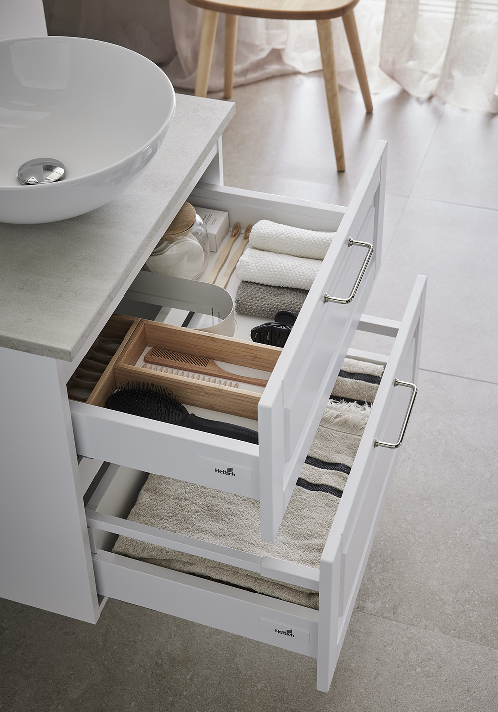 Hafa Grace er baderomsmøbler med vakkert profilerte fronter designet for å passe inn i både et landlig og et moderne baderom i skandinavisk stil. Mykstengende skuffer med fulluttrekk gir god oversikt over innholdet. Skuffematter og skuffeinnredning av bambus hjelper til med å holder orden. Baderomsskapet er ferdigmontert og enkelt å montere med justerbare opphengsbraketter og plass tilrettelagt for både vegg- og gulvavløp. Grace servantskap finner i flere bredder fra 600 opp til 1200 og i to matte farger - hvit og antrasitt. Hafa Grace er baderomsmøbler med vakkert profilerte fronter designet for å passe inn i både et landlig og et moderne baderom i skandinavisk stil. Mykstengende skuffer med fulluttrekk gir god oversikt over innholdet. Skuffematter og skuffeinnredning av bambus hjelper til med å holder orden. Baderomsskapet er ferdigmontert og enkelt å montere med justerbare opphengsbraketter og plass tilrettelagt for både vegg- og gulvavløp. Grace servantskap finner i flere bredder fra 600 opp til 1200 og i to matte farger - hvit og antrasitt. Sidemodulen gir mulighet til å lage ytterligere varianter og kombinere et baderomsmøbel som passer akkurat ditt baderom. Velg håndtak eller knott som passer din stil og kompletter med frittstående servant på en benkeplate eller nedsenket servant i porselen. Kjøp til blandebatteri, bunnventil, vannlås, skuffebelysning og stikkontakt. Sidemodulen gir mulighet til å lage ytterligere varianter og kombinere et baderomsmøbel som passer akkurat ditt baderom. Velg håndtak eller knott som passer din stil og kompletter med frittstående servant på en benkeplate eller nedsenket servant i porselen. Kjøp til blandebatteri, bunnventil, vannlås, skuffebelysning og stikkontakt.