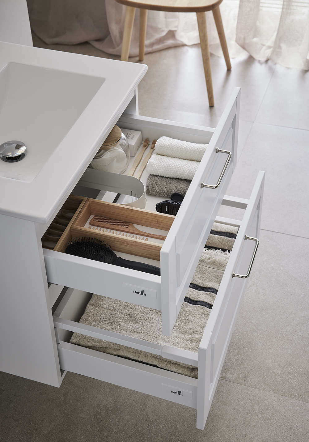 Hafa Grace er baderomsmøbler med vakkert profilerte fronter designet for å passe inn i både et landlig og et moderne baderom i skandinavisk stil. Mykstengende skuffer med fulluttrekk gir god oversikt over innholdet. Skuffematter og skuffeinnredning av bambus hjelper til med å holder orden. Baderomsskapet er ferdigmontert og enkelt å montere med justerbare opphengsbraketter og plass tilrettelagt for både vegg- og gulvavløp. Grace servantskap finner i flere bredder fra 600 opp til 1200 og i to matte farger - hvit og antrasitt. Hafa Grace er baderomsmøbler med vakkert profilerte fronter designet for å passe inn i både et landlig og et moderne baderom i skandinavisk stil. Mykstengende skuffer med fulluttrekk gir god oversikt over innholdet. Skuffematter og skuffeinnredning av bambus hjelper til med å holder orden. Baderomsskapet er ferdigmontert og enkelt å montere med justerbare opphengsbraketter og plass tilrettelagt for både vegg- og gulvavløp. Grace servantskap finner i flere bredder fra 600 opp til 1200 og i to matte farger - hvit og antrasitt. Sidemodulen gir mulighet til å lage ytterligere varianter og kombinere et baderomsmøbel som passer akkurat ditt baderom. Velg håndtak eller knott som passer din stil og kompletter med frittstående servant på en benkeplate eller nedsenket servant i porselen. Kjøp til blandebatteri, bunnventil, vannlås, skuffebelysning og stikkontakt. Sidemodulen gir mulighet til å lage ytterligere varianter og kombinere et baderomsmøbel som passer akkurat ditt baderom. Velg håndtak eller knott som passer din stil og kompletter med frittstående servant på en benkeplate eller nedsenket servant i porselen. Kjøp til blandebatteri, bunnventil, vannlås, skuffebelysning og stikkontakt.