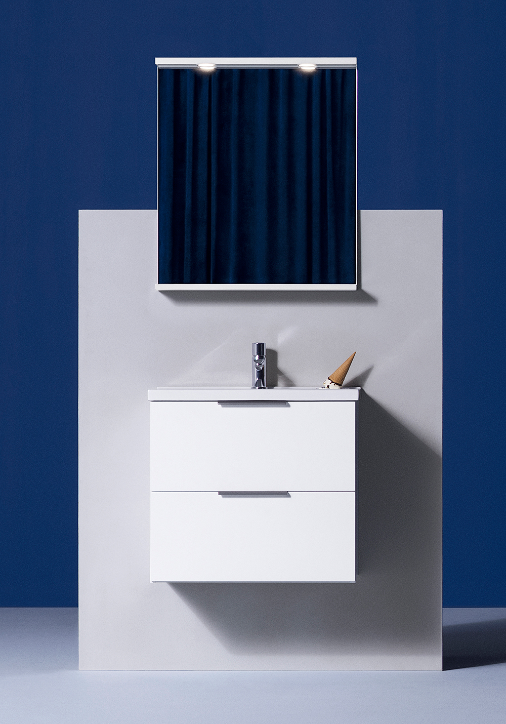 Mykstengende skuffer med fulluttrekk gir god oversikt over innholdet. Skuffematter og skuffeinnredning av bambus hjelper til med å holder orden. Baderomsskapet er ferdigmontert og enkelt å montere med justerbare opphengsbraketter og plass tilrettelagt for både vegg- og gulvavløp. Sidemodulen gir mulighet til å lage ytterligere varianter og kombinere et baderomsmøbel som passer akkurat ditt baderom. Velg håndtak eller knott som passer din stil og kompletter med frittstående servant på en benkeplate eller nedsenket servant i porselen. Kjøp til blandebatteri, bunnventil, vannlås, skuffebelysning og stikkontakt.