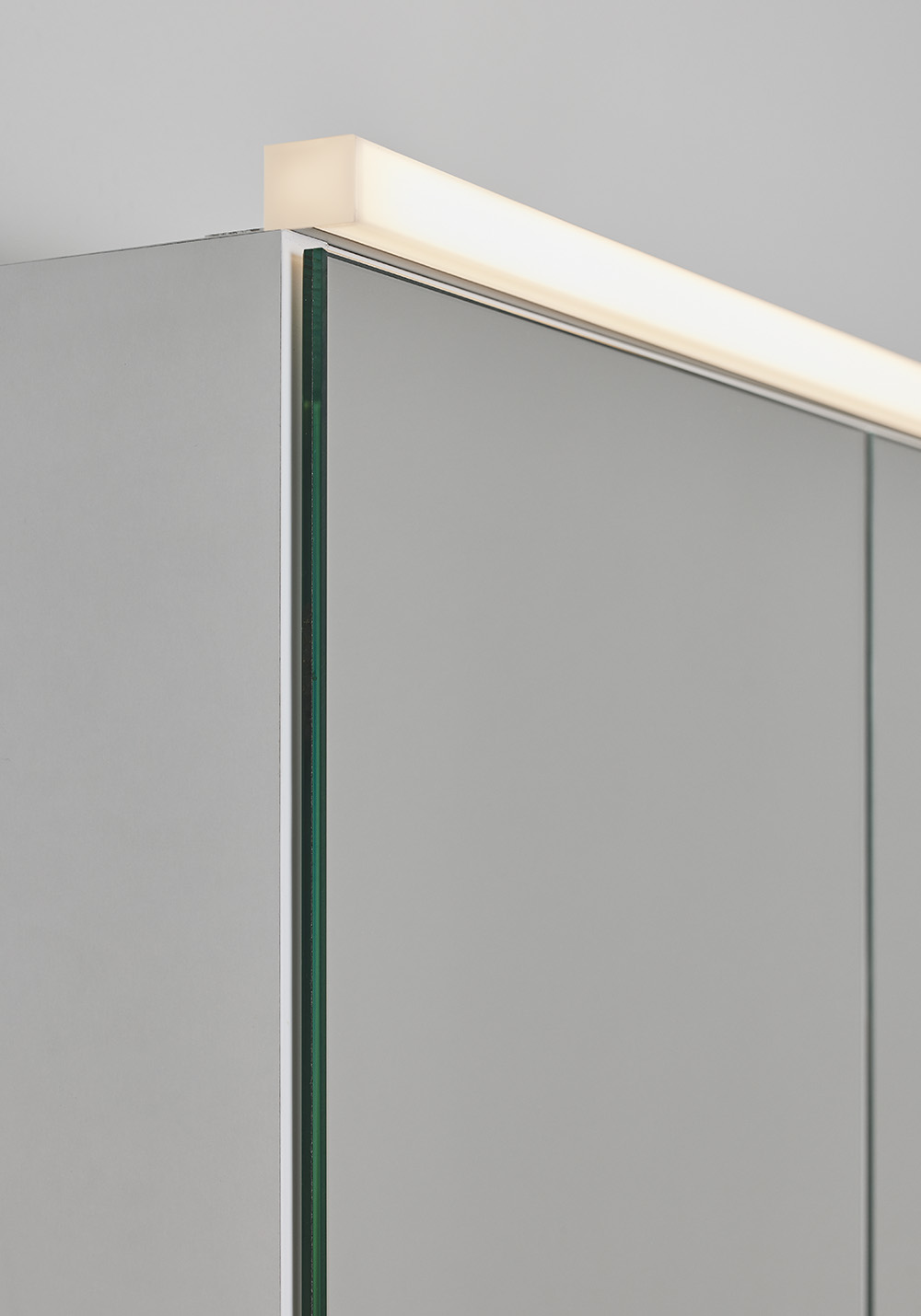 Stilig belysningsprofil som lyser oppover, framover og nedover for effektiv belysning av speilskapet. Speilskap Hafa Go Basic er forberedt for montering av denne belysningsprofilen. IP44. Kjøp til en 15 W transformator for en komplett løsning.