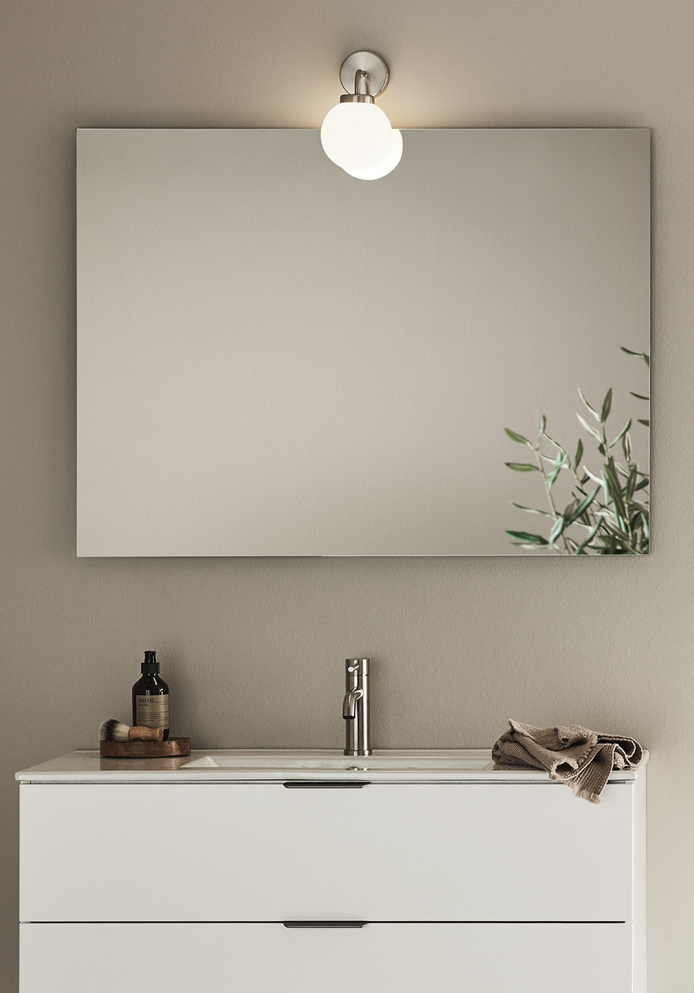 Stilrent speil med skjulte justerbare monteringsbraketter for enkel montering. Kjøp til Go LED-lampe, 126 72 70.