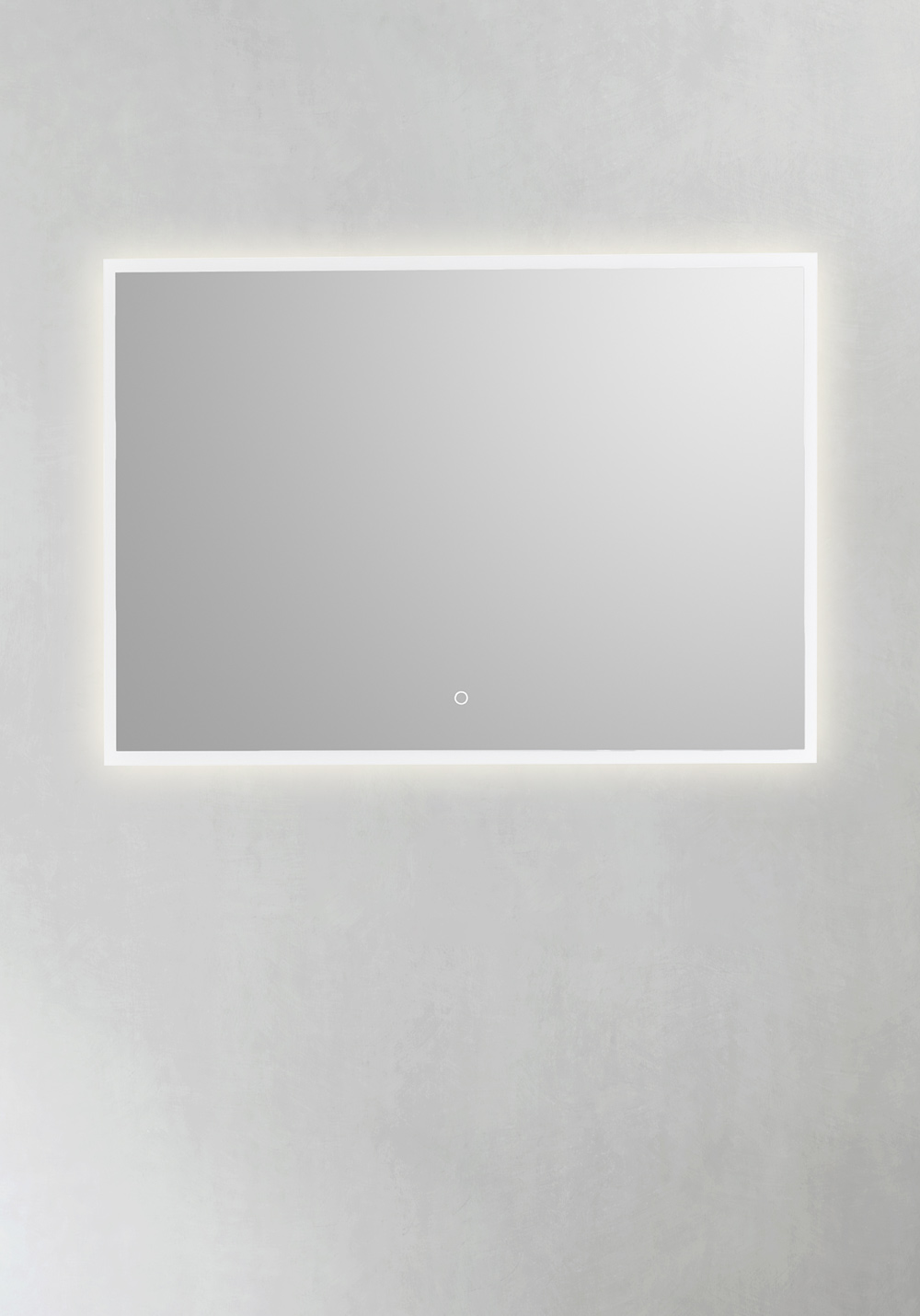 Stilrent rektangulært speil med dimbar belysning rundt. Dekorativ og funksjonell LED-belysning med varmhvitt lys som styres med touchfunksjon. Speilet husker den siste lysinnstillingen ved på/av. IP44.