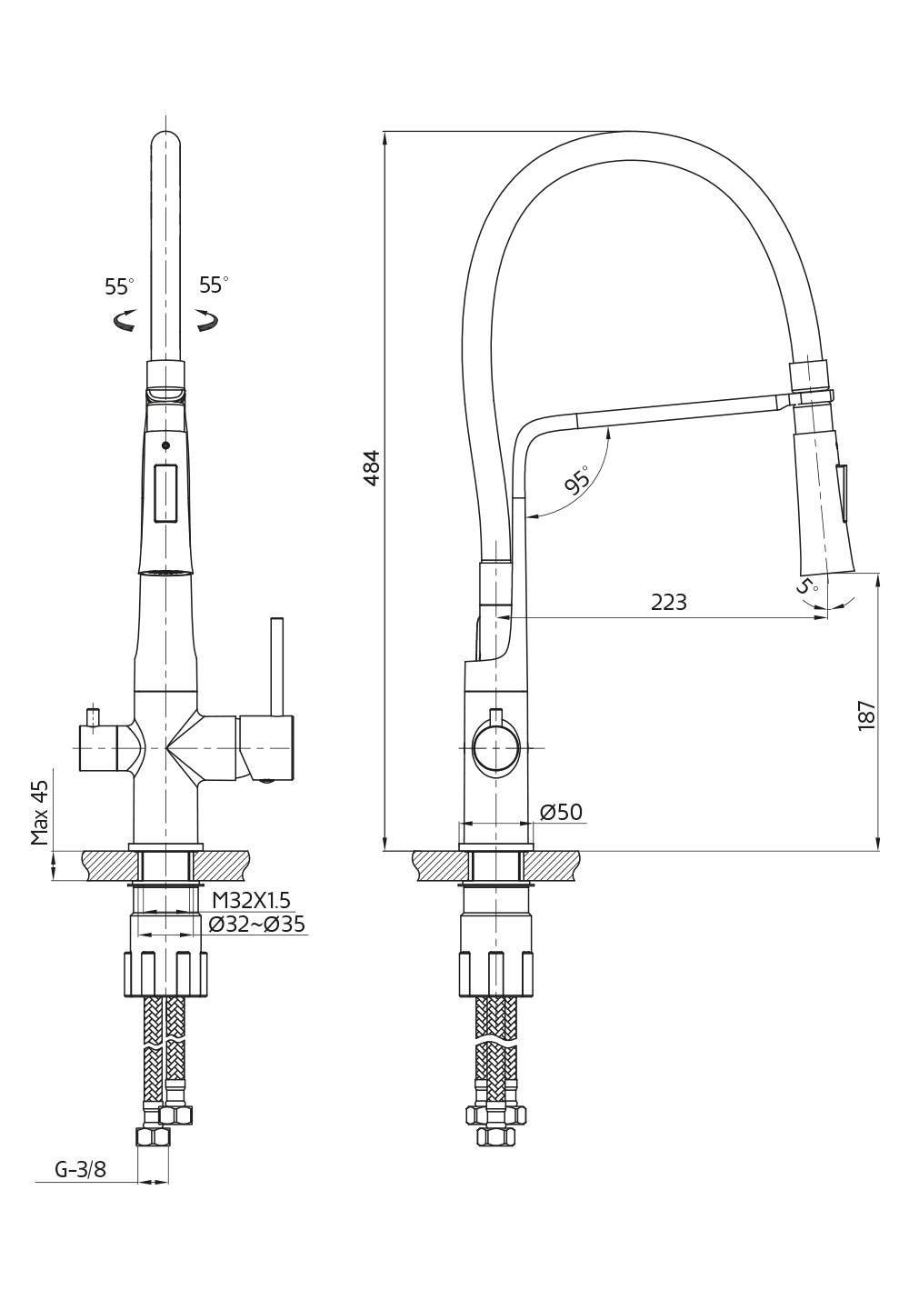 Kjøkkenblander Verge Svart M Avstenging For Oppvaskmaskin