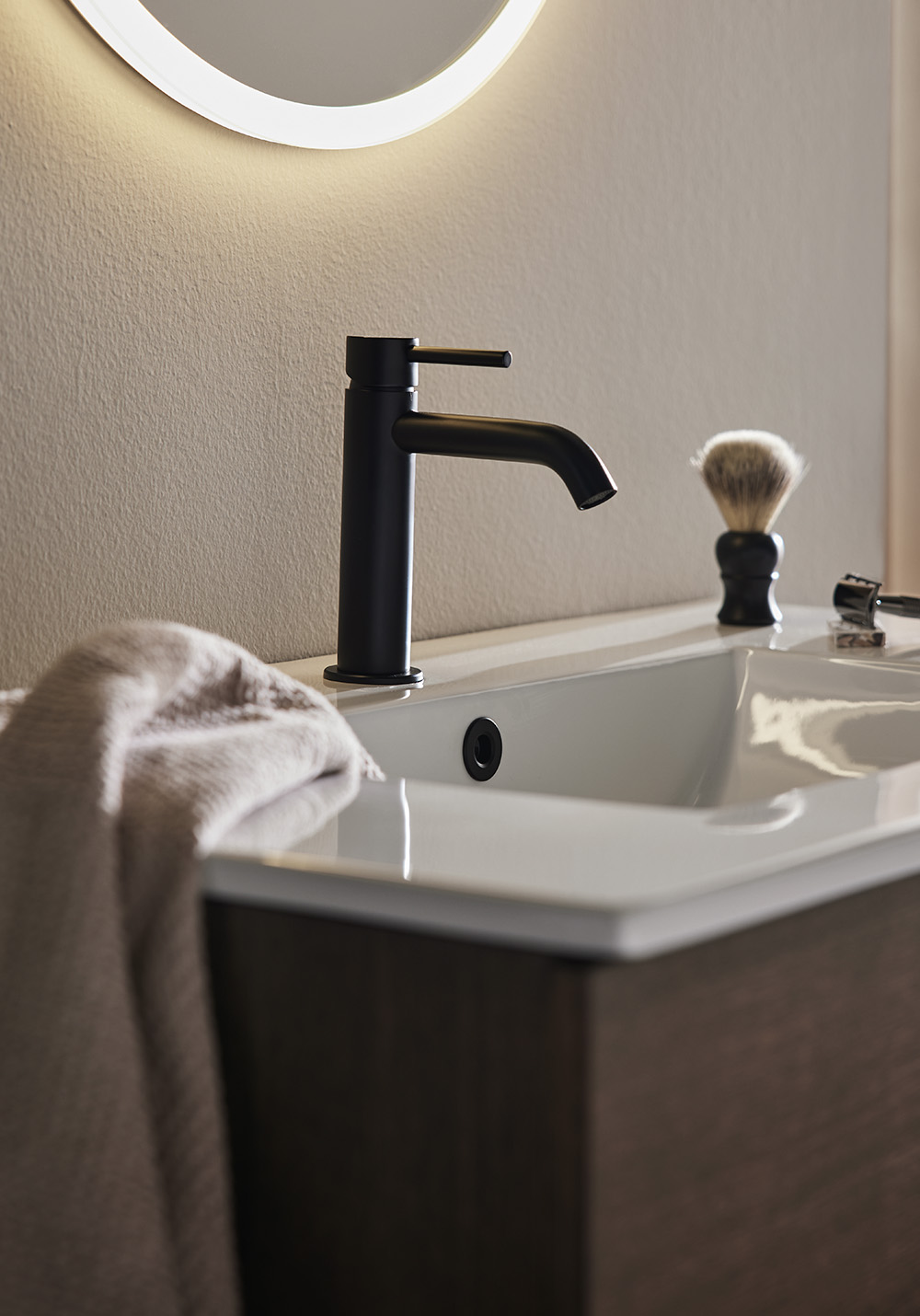 Wind er et stilrent servantbatteri i rustfritt stål med en myk form. Blandebatteriet er et ettgrepsbatteri og har EasyMount verktøyfri montering. Leveres i fargene børstet rustfritt stål og matt svart lakkert. Blandebatteriet er utstyrt med Water Save vannbesparende strålesamler og er testet og typegodkjent av RISE og sertifisert av SINTEF. Kjøp til en bunnventil i matchende farge.