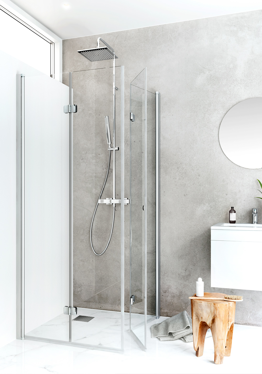 - Dusjhjørne med foldbare dusjdører med stabile profiler