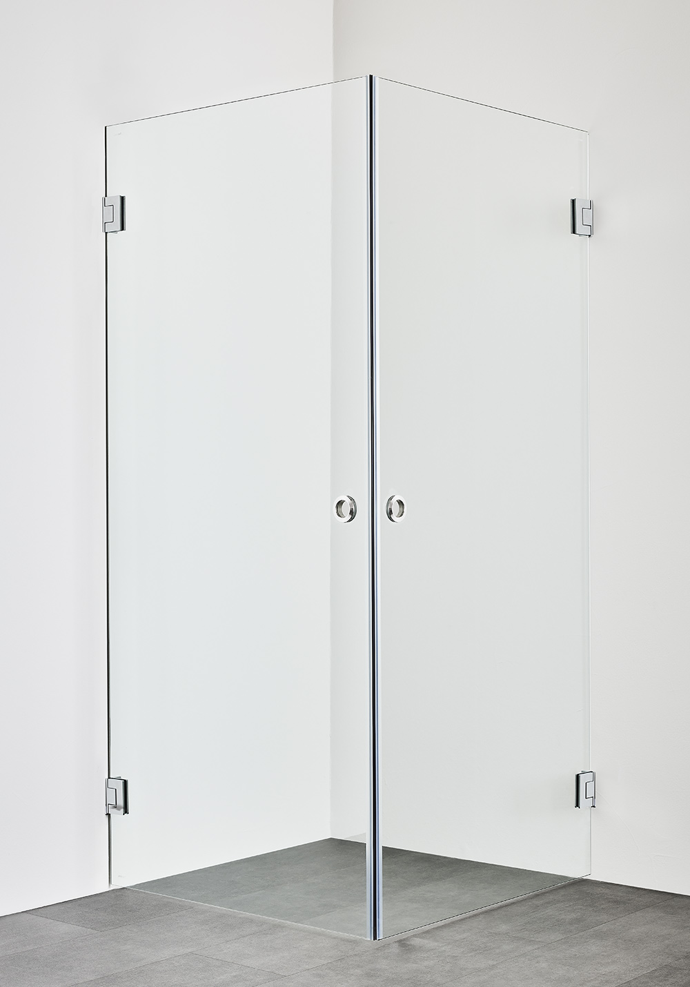Eksklusivt dusjhjørne med pene beslag og en elegant håndtaksløsning. Velg mellom tre farger, krom, matt svart og børstet messingfarge. De store glassflatene gir et luftig inntrykk og skaper en herlig plass i baderommet. Dørene er vendbare og kan foldes inn mot veggen når de ikke brukes, noe som gir muligheten til å skape en luksuriøs dusj selv på et mindre baderom. Tenk på at Infinity ikke har tetningslister som standard, så et riktig gulvfall blir ekstra viktig. Magnetlist inkludert. Full høyde 2000 mm og med 8 mm herdet klart sikkerhetsglass.