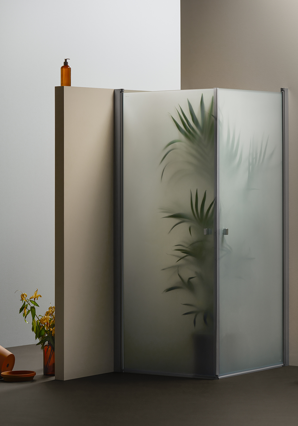 Dusjhjørne med limbare aluminiumsprofiler – rask montering. Kan enkelt installeres og justeres av én person takket være InstaQuick™. Vendbare dører. 6 mm herdet sikkerhetsglass. 8 mm frigang mot gulv. Høyde 2000 mm. Kan monteres med 12 mm utenpåliggende rør, cc 35 mm. 22 mm slepelist medfølger.