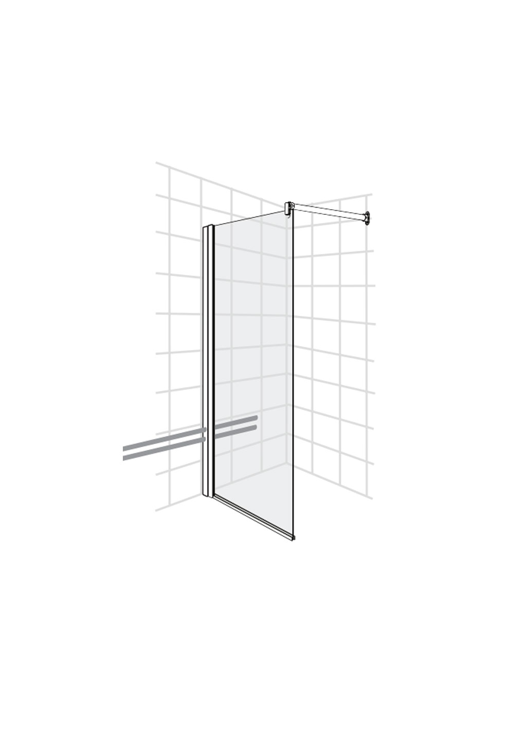 Forlengelsesprofil for fast dusjvegg som gjør det mulig å legge rør 35 mm fra vegg for utenpåliggende rør.