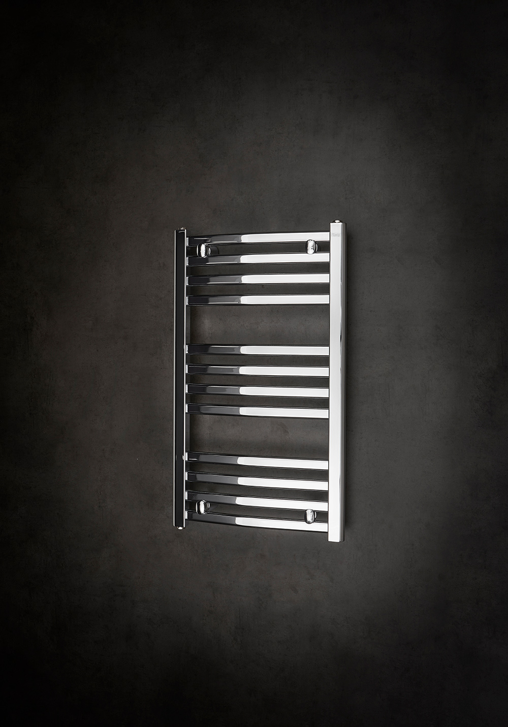 Håndkletørker av firkantede forkrommede rør av stål. For vannbåren varme eller elpatron. Fås i tre høyder og to bredder