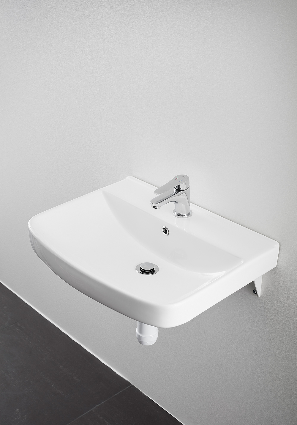 Servant i porselen med overløp CL15 som monteres på knekt (inngår ikke) Romslig vask og godt med avsettingsplass på siden.