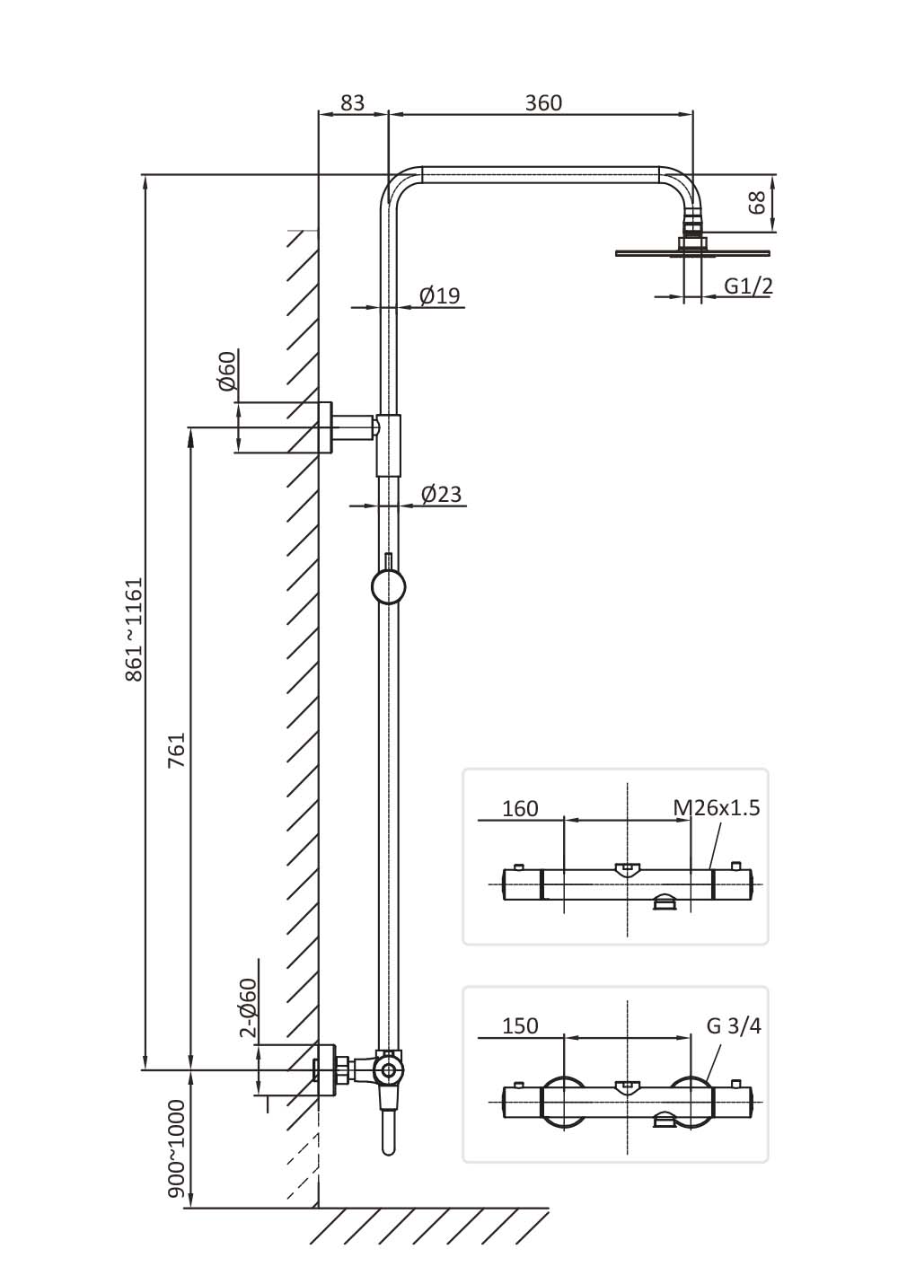 CC Festemål blandebatteri (mm)