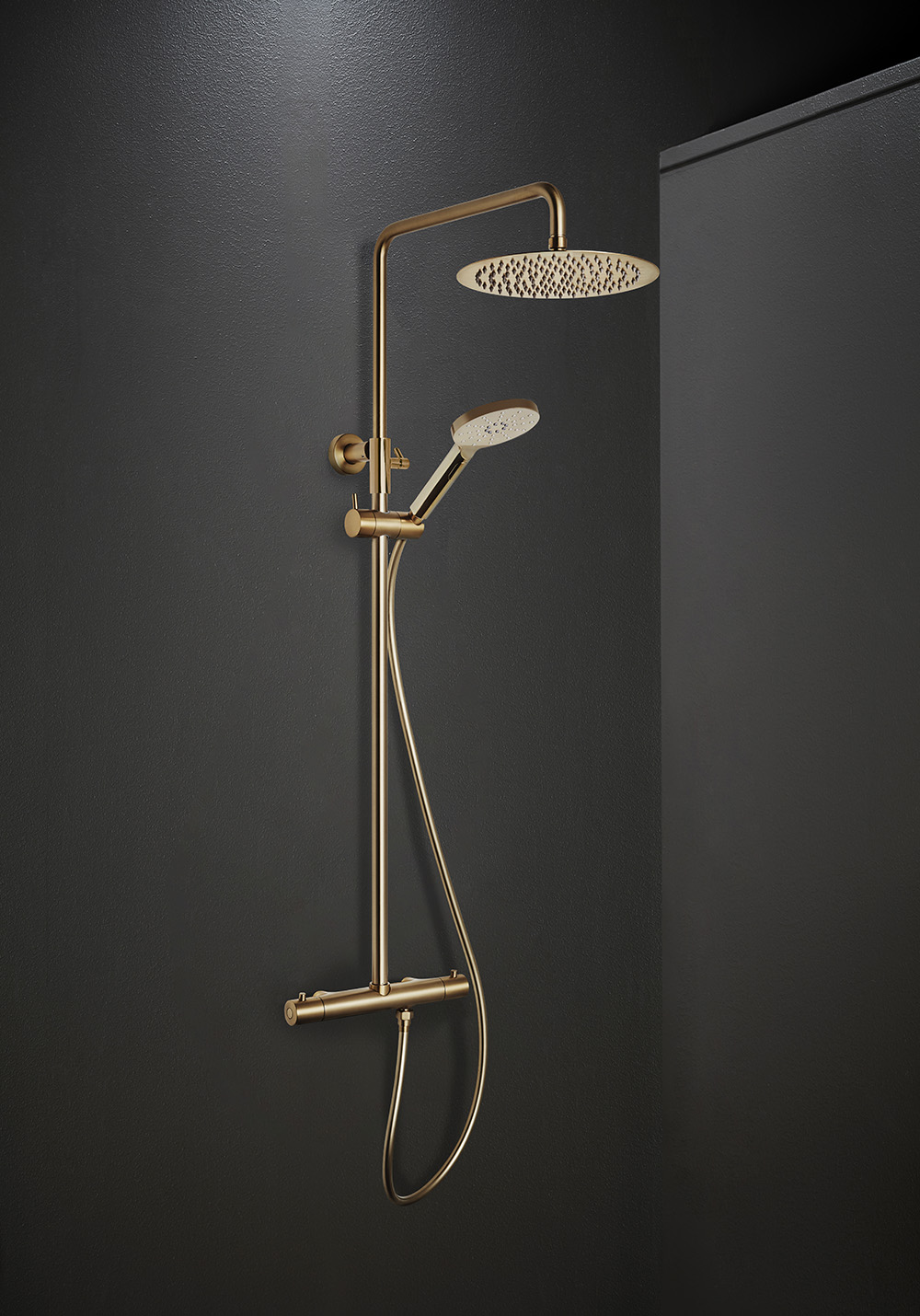 Komplett takdusj med tynt dusjhode av rustfritt stål, Ø200, 250 eller 300mm. Pen termostatblander av messing med skoldingsperre og HeatProtection. Velg mellom fargene krom, matt svart og børstet messing. Overflaten beholder sin vakre farge over tid. Dusjstang med teleskopfunksjon. AntiTwist, som betyr at dusjhåndtaket kan rotere fritt uten at slangen vrir seg. Praktisk og stilren hånddusj i ABS. Antikalksystem for enkel fjerning av kalk i dusjhodet samt hånddusj. Med Water Save som bety at du bruker mindre vann.